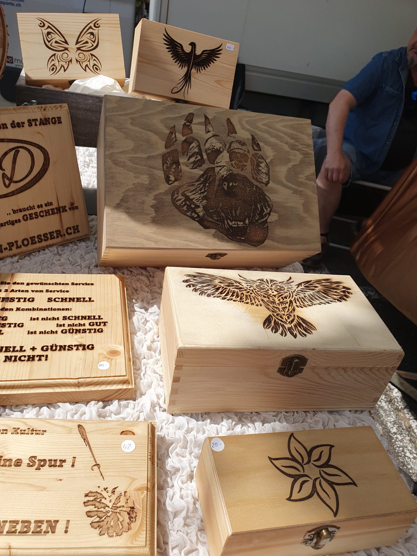 Ein unvergessliches Andenken aus Holz ist nicht nur ein Blickfang, sondern auch unverwüstlich und langlebig. Bei Kreativ Design Plösser biete ich dir massgeschneiderte Holzarbeiten, die genau nach deinen Wünschen gefertigt werden. Mit modernster Technik und traditionellem Handwerk erschaffen ich einzigartige Holzprodukte, die perfekt auf deine Bedürfnisse und Vorstellungen abgestimmt sind.