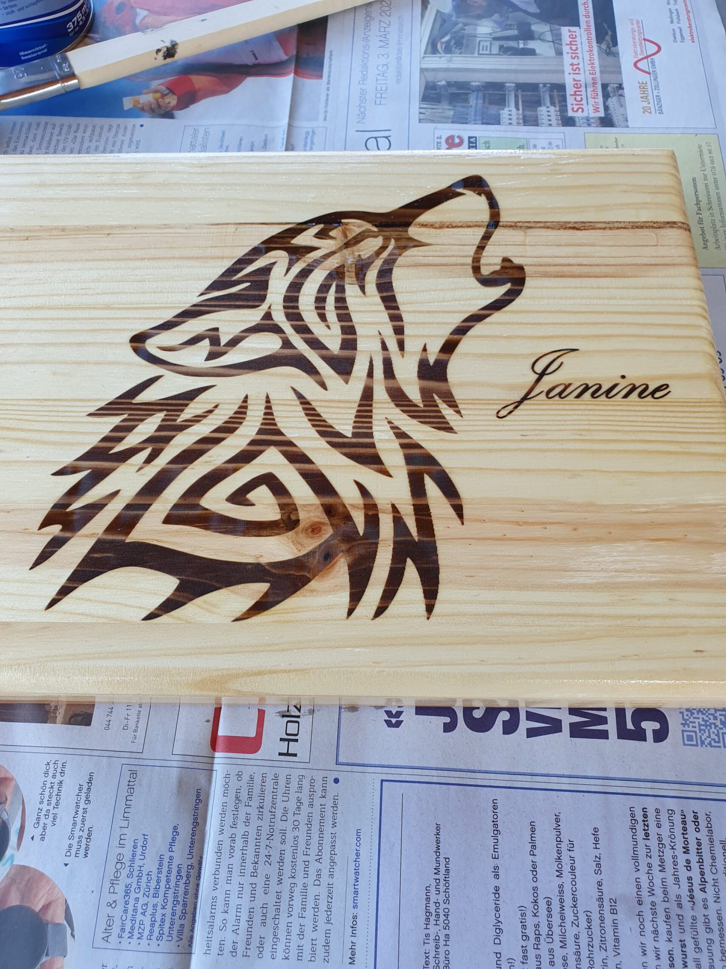 Mit meiner modernen Laser- und CNC-Maschine kann ich präzise Gravuren und Schnitzereien in verschiedenen Holzarten anfertigen. Ob Namen, Sprüche, Logos oder komplexe Designs – deiner Kreativität sind keine Grenzen gesetzt.