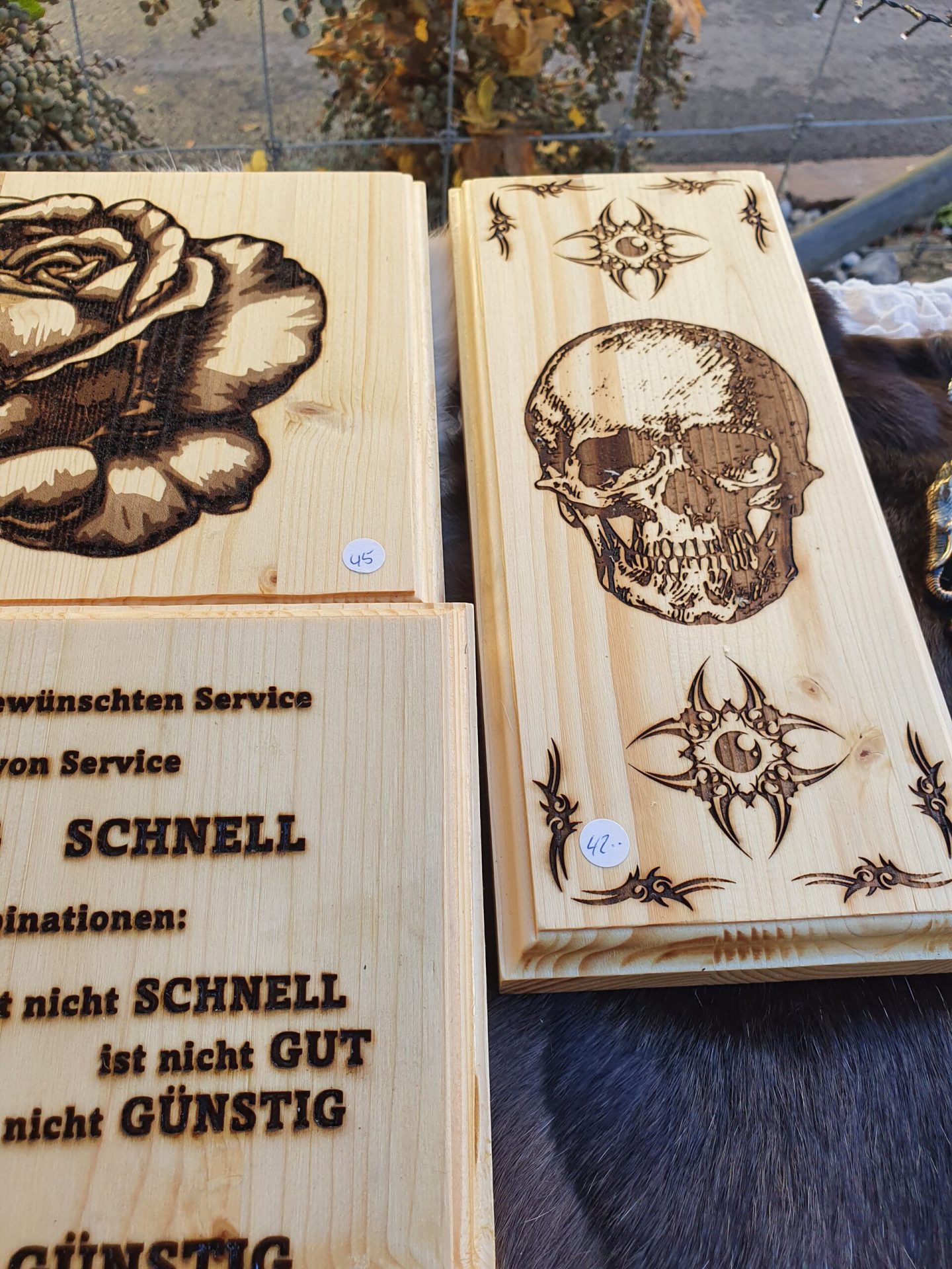 Mein Angebot umfasst eine Vielzahl von Holzprodukten, die für verschiedene Anlässe und Zwecke perfekt geeignet sind. Ob für besondere Geschenke, persönliche Andenken oder dekorative Elemente – ich habe sicher das Richtige für dich.